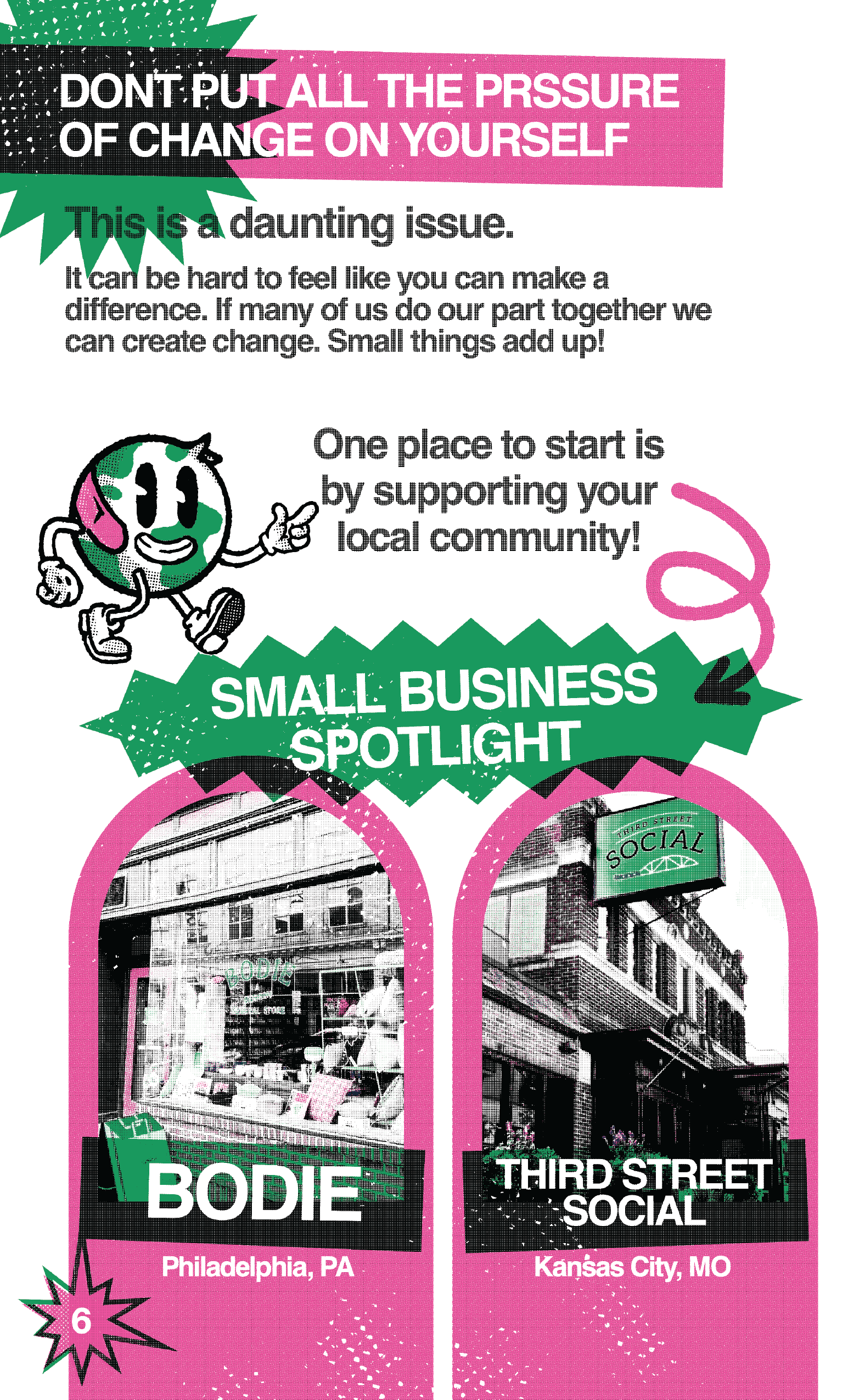 The Backyard is a three-part risograph zine series, crafted over eight months, offering a fresh 2024 perspective on environmentalism. Through research-driven content and design, these zines explore the influence of individuals, corporations, and governments on the planet—and the steps we can take to foster change. After print production, these zines were sponsored by Vortex Souvenir, a Wichita-based gift shop that supports local artists and offers quirky, creative products. With this sponsorship, I chose to distribute the zines for free through some of my favorite small businesses, aiming to make the information widely accessible while also encouraging my community to explore and support local shops in search of all three issues.